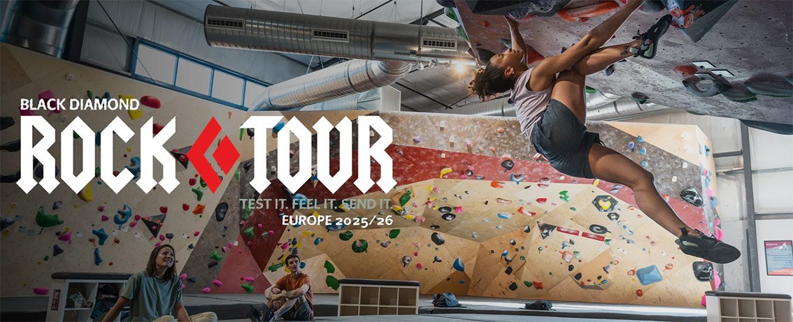 Mit der neuen Momentum-Kletterschuhkollektion geht Black Diamond ab Herbst 2025 auf große Tour durch Europa. Die Rock Tour umfasst über 60 Stopps in Deutschland, der Schweiz, Frankreich, Polen, Schweden, Tschechien, der Slowakei und Großbritannien. Mit der Tour bringt Black Diamond seine neuesten Kletterschuhe direkt zu den Kletter:innen – dorthin, wo sie getestet, diskutiert und getragen werden: in die Hallen. Im Zentrum der Tour stehen interaktive Abende mit Kletter- und Bouldercommunities in den Hallen vor Ort. Besucher:innen haben die Möglichkeit, die neue Momentum- und Method-Schuhlinie kostenlos zu testen, an Technik & Community-Sessions teilzunehmen und mit BD-Athlet:innen ins Gespräch zu kommen.