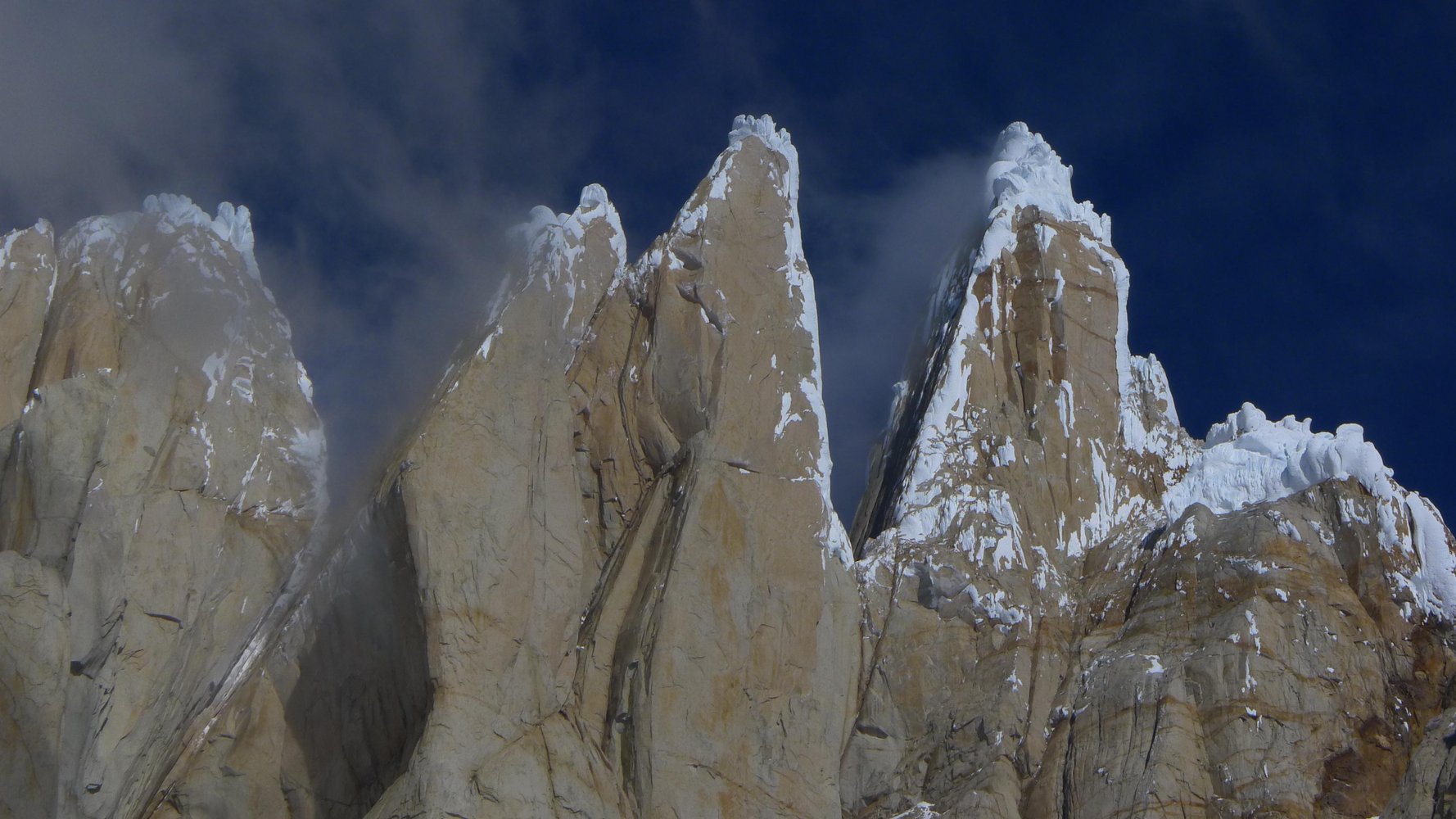 Beim Nächsten Schönwetterfenster gelang uns auch noch die „Franco-Argentina“ (650m, 55°, 6c) auf den Fitz Roy, bei grenzwertigen Verhältnissen. Das letzte Schönwetterfenster hat sich dann leider um einen Tag vor verschoben und so konnten wir nur noch einen beherzten Versuch, auf die Aguja St. Exupery, in einem Zug von El Chalten aus unternehmen, welcher ca. in Wandmitte sein Ende fand.