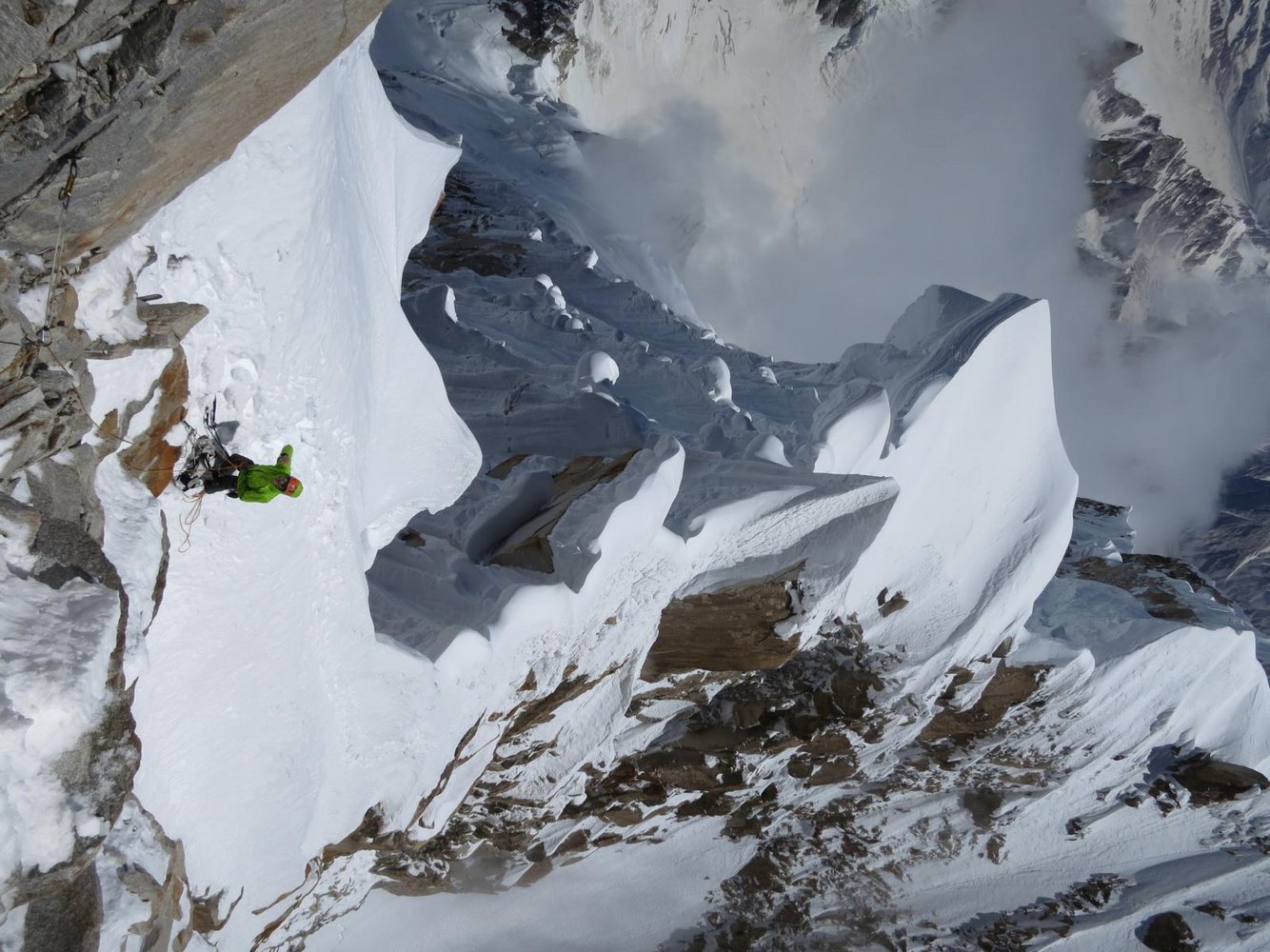 Der Ogre ist einer der berühmtesten Berge der Welt, noch bis zum vergangenen Jahr war er nur zweimal, und, trotz vieler Versuche nie aus dem Süden erstiegen worden. Kyle Dempster, Hayden Kennedy und Josh Wharton (USA) wählten eine schlaue Line über den Südostgrat, die Südostwand und schließlich die Südwand. Die Querung in die Südwand war extrem heikel und führte in schwieriges Mixed Gelände. Von einem Biwak auf 6.900 m erreichten Dempster und Kennedy den Gipfel und mussten dann den schwierigen Abstieg mit dem kranken Wharton meistern. Einen langen Bericht gibt’s hier