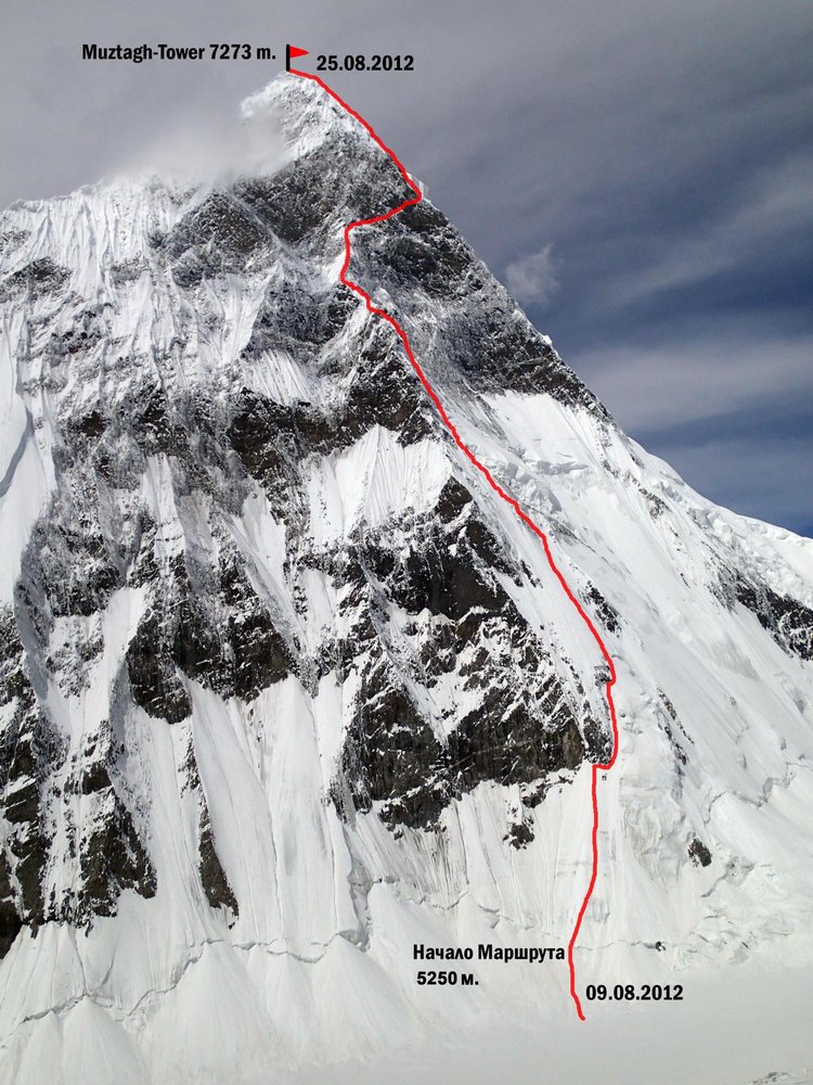 Viel diskutiert, aber nie zuvor versucht, der 2.000 m hohe Nordostgrat dieses formschönen Karakorum Gipfels nahm die Russen Dmitry Golovchenko, Alexander Lange und Sergey Nilov (Russland) 17 Tage in Anspruch. Die drei kletterten im alpinen Stil, nahmen einen großen Haulbag mit Lebensmitteln und Benzin mit. Eine Strategie, die es ihnen erlaubte, Schlechtwetterphasen in der Wand auszusitzen. Als technische Crux erwies sich die sehr steile Felsenbarriere zwischen 6.600 m und 6.900 m. Ausgehende Lebensmittel und Schlechtwetter vereitelten aber den Gipfelsieg und zwang sie über die Nordwand abzusteigen. mehr Siehe auch Video ganz unten.