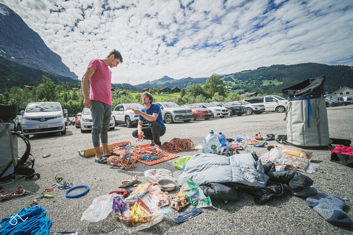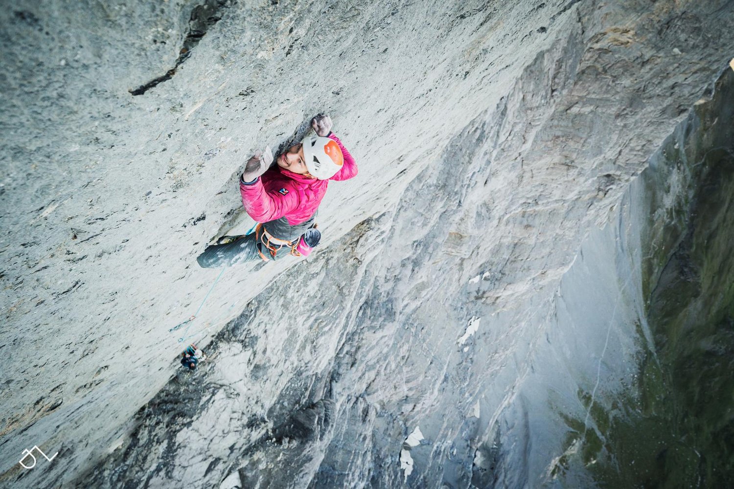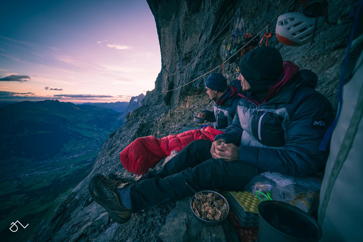 Nachdem die beiden ihr Vorhaben insgesamt drei Mal aufgrund von schlechtem Wetter verschieben mussten, bot sich Ende August ein geeignetes Wetterfenster. Abends standen die Vorzeichen für eine erfolgreiche Begehung noch schlecht, über Nacht trocknete der Fels jedoch erstaunlicherweise ab. Die beiden Millet Athleten entschieden das Projekt ohne vorherige Besichtigung der Route anzugehen. So fand die Tourenplanung ausschließlich mit Hilfe von bereits vorhandenen Topos und Erfahrungsberichten statt. Eine der größten Schwierigkeiten neben der ständigen Kälte (weniger als 10 Grad Celsius) war das schwere Gepäck. In zwei 75 Liter Haulbags transportierten sie zusätzlich zu ihrer Kletterausrüstung alles Notwendige für zwei Nächte (Portaledge, Schlafsack, etc.) und vor allem viel Proviant und Wasser mit in die Höhe.
