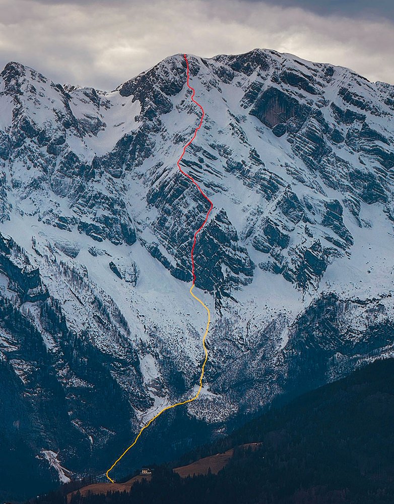 Schon länger spielten wir - Tobi Ebner und Rudi Hauser - mit dem Gedanken, eine neue Route durch die massive und mächtige Ostwand des Hohen Göll zu eröffnen. Da die Bedingungen in so einer Wand sehr speziell sind und nur äußerst selten „vertretbare“ Verhältnisse aufweisen, muss man im Falle des Falles die Gelegenheit beim Schopf packen und zeitnahe einsteigen. Nach genauer Beobachtung der Wetterlage und der Bedingungen war uns klar, dass der Moment der Begierde gekommen ist. Unser Ziel: eine anspruchsvolle, lange und direkte Linie durch den linken Teil der Wand in einem fairen und sauberen Stil!