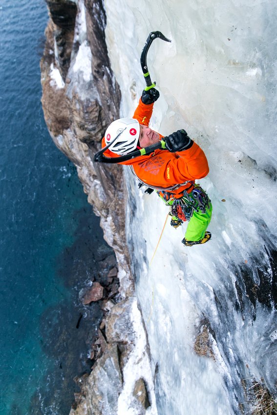 In den folgenden Wochen trauten wir unseren Augen kaum. Graham hatte nicht zuviel versprochen – es wuchsen tausende Eislinien über diesen Winter und warteten darauf geklettert zu werden. Doch wir waren ziemlich wählerisch und suchten uns nur die längsten und formschönsten Formationen aus. Meist auf dünnen Glasuren bewegten wir uns vom Meer weg bis auf über 800 Meter Seehöhe und wir konnten einige schier endlose Linien klettern. Dabei blieben wir unserem Stil treu und hinterließen alle Routen ohne Bolts und Haken – clean. Nach solch intensiven Erlebnissen wird es einem doch klar, warum es einen immer wieder in solche Regionen zieht.