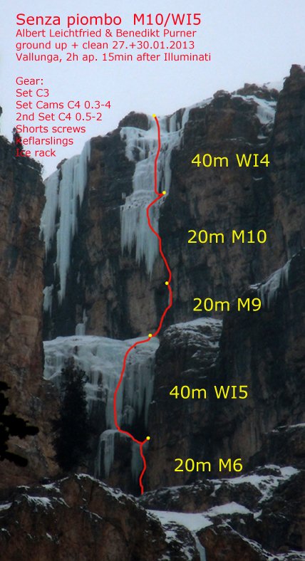 Nach einem Ausflug zur „Zauberflöte“ im Langental mit Benedikt Purner Mitte Jänner dieses Jahres sind uns neben der immensen Schönheit dieser sehr selten kletterbaren Linie bald zwei Dinge klar geworden. Zum einen hatte es in den Dolomiten so viel Eis wie schon seit ewigen Zeiten nicht mehr und zum anderen war es nach einem unglücklich verlaufenen letzten Winter endlich wieder einmal soweit, dass unsere auf neue Möglichkeiten geschulten Augen einige viel versprechende Linien erspähen konnten.
