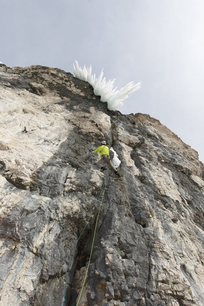 Auf Grund der enormen Wärme an diesem Tag, war die Abschlusseillänge im Eis eher gruselig, aber Benni ließ sich nicht mehr aus der Ruhe bringen. Wir erfüllten uns mit „Senza piombo“, der vermutlich ersten clean gekletterten M10, einen über einige Jahre ersehnten Traum. All das Training und die Kletterei in harten Mixedrouten waren wie eine Art Vorbereitung für diesen Tag, um unsere erlernten Fähigkeiten auf einen Punkt zu konzentrieren.