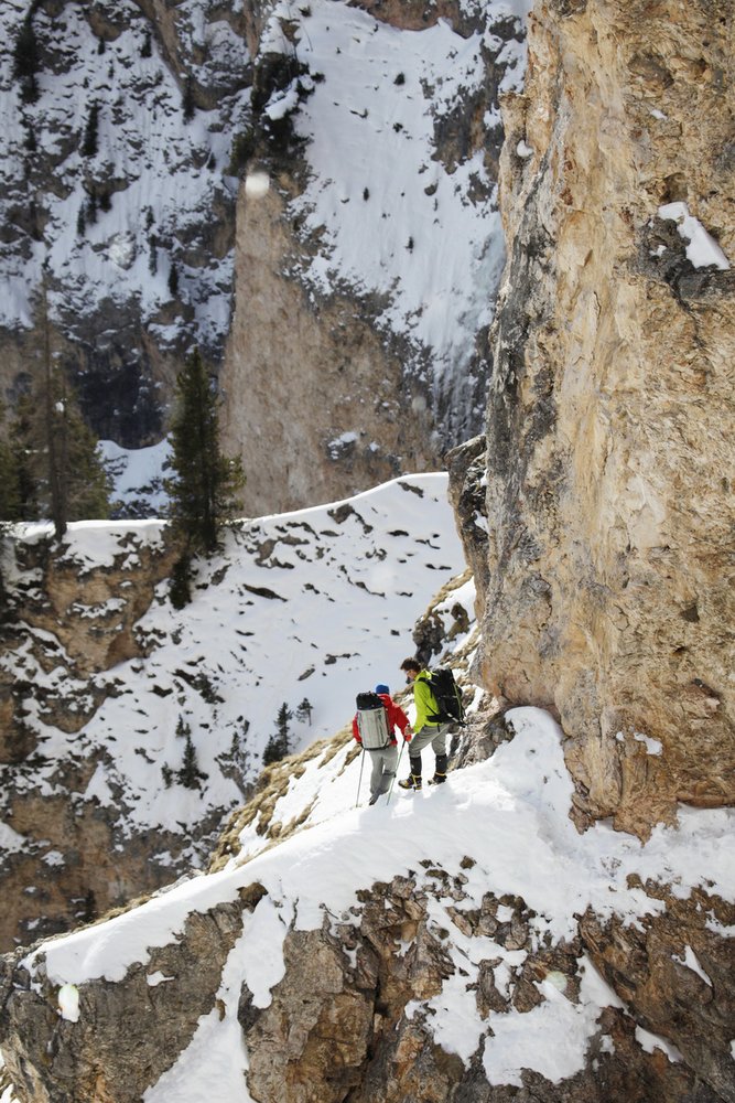 Nach einem eher schwerlich anklingenden Eiswinter, kamen Benni und ich im Laufe des Jänners langsam in Form. Wir kletterten einige schöne Eis- und Mixedlinien im Südtiroler Langental bei Wolkenstein. Auffällig dabei war schon, dass wir verstärkt versuchten, in den Mixedlängen auf die Verwendung von Eisenmaterial wie Haken oder Bolts zu verzichten.