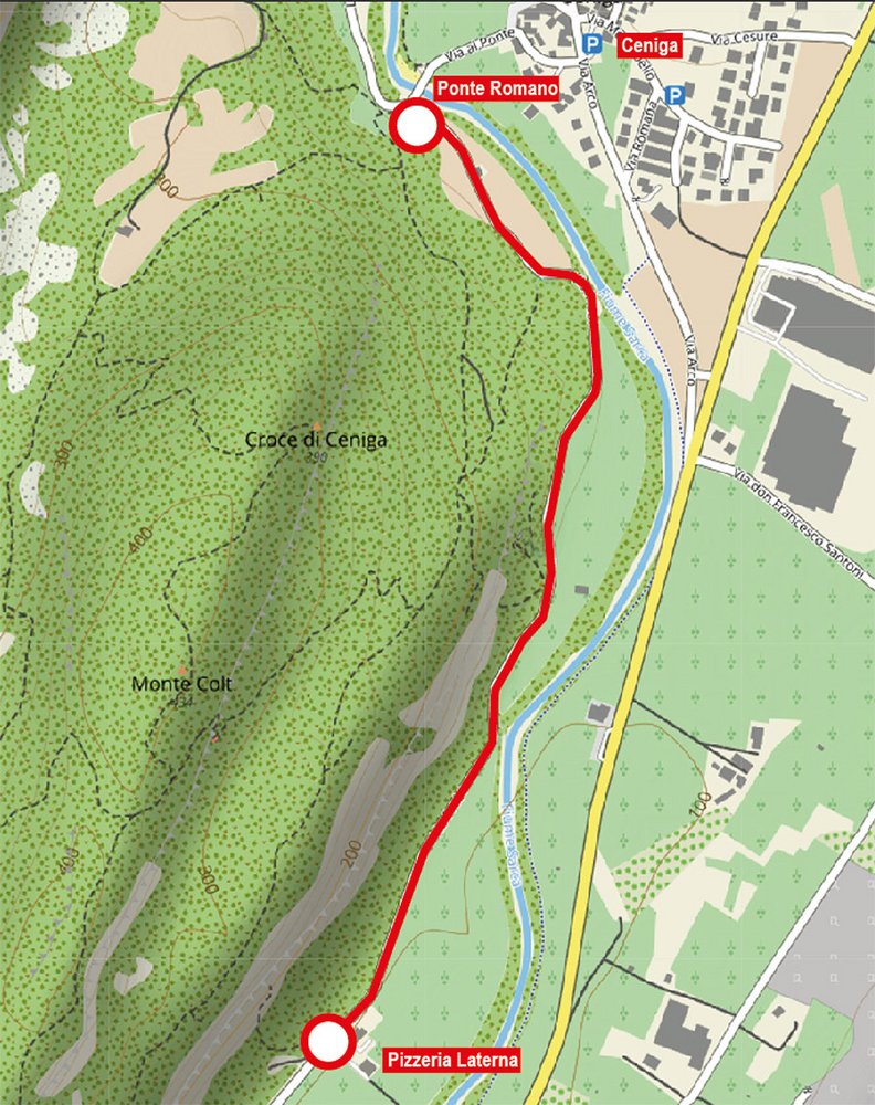 Das Parken ist in Ceniga möglich, dort gibt es zwei Parkplätze, welche aber auch von den Anrainern gebraucht werden (die alten Häuser haben in der Regel nur selten Parkmöglichkeiten oder Garagen). Wie sich das dann auswirken wird, ob die Parkplätze in Ceniga in Anwohnerparkplätze umgewandelt werden oder ob für die Kletterer – die ja auch touristisch einen Wirtschaftsfaktor darstellen - eine bessere/andere Lösung gefunden wird, bleibt abzuwarten.