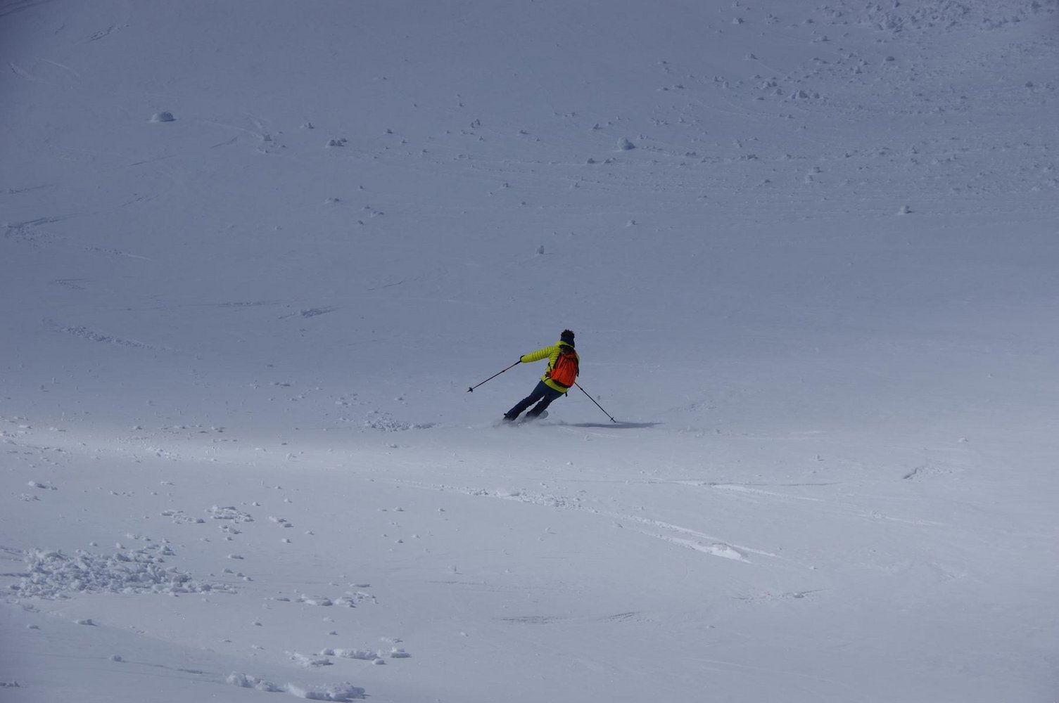 Schon nach den ersten Schwüngen zeigt der Explorair 95 seinen sportlichen Charakter. Der Ski möchte aktiv gefahren werden und belohnt sauberen Druckaufbau über die Schaufel mit präzisen Radien und direktem Feedback. Auf hartem Untergrund ist der Kantengriff für einen leichten Tourenski gut, auch wenn man sein geringes Gewicht bei sehr hohen Geschwindigkeiten spürt. Bis in zügiges Tempo hinein bleibt der Ski ruhig und kontrolliert, jenseits davon macht sich die Leichtigkeit konstruktionsbedingt bemerkbar.