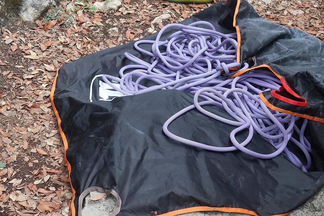 Auf den ersten Blick (und auch auf den Zweiten) sieht es aus wie ein ganz normales Einfachseil, schön mit einer Kartonschleife verpackt, aus dem Loch schaut ein Seilende heraus und das war es auch schon mit der unspektakulären Verpackung. Man zieht das Seil komplett durch das Kartonloch (dieser Vorgang soll der Krangel-Bildung entgegenwirken) und schon hat man das Edelrid NEO 100 3R vor sich auf der Seilplane liegen - unsere Wahl fiel auf ein 70 Meter Seil, da ist man beim Durchziehen schon etwas beschäftigt.
