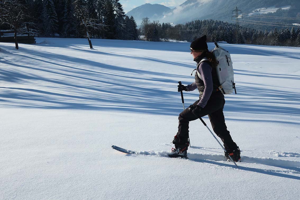 Grundsätzlich geht der Trend beim Tourengehen in Richtung breitere Skier, da man mit diesen natürlich das bessere Fahrerlebnis hat. Wir haben uns bewusst für den Helio Carbon 95 entschieden, da man mit diesem Ski auch längere und in der Regel recht kräftezehrende Touren gut bewältigen kann. Bei längeren Touren ist man oft vier bis fünf Stunden unterwegs – da macht sich jeder Schritt am Ende bemerkbar, und jedes Gramm zu viel zieht den Fuß einfach etwas stärker nach unten zurück in die Skitourenspur.