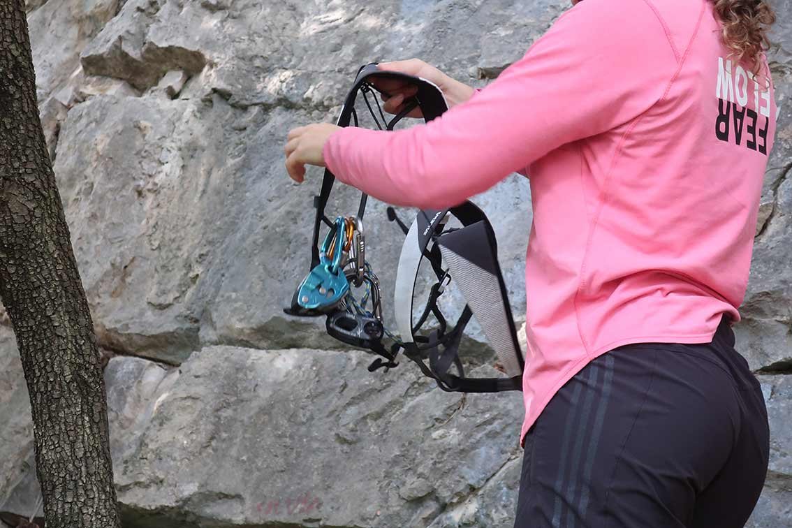 - Perfekte Zentrierung der Sicherungsschlaufe, ob mit T-Shirt oder schwerer Daunenjacke, dank der beiden Schnallen am Hüftgurt