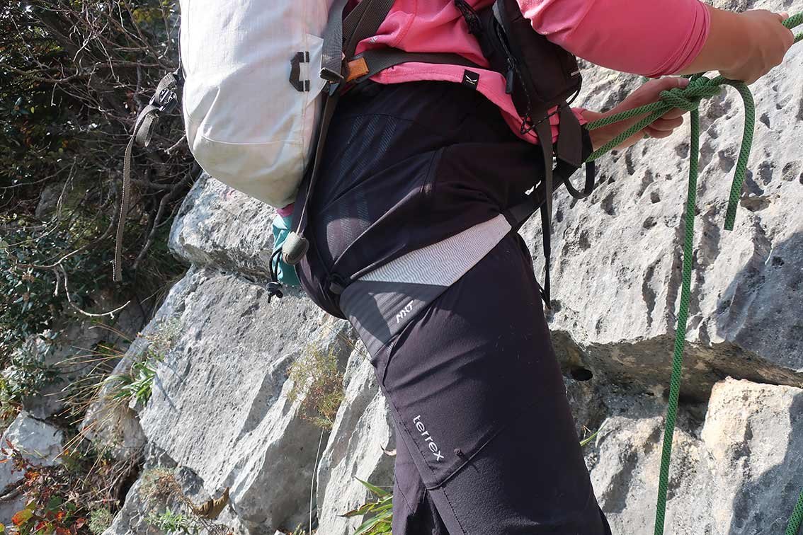 Obwohl der Gurt auch zwei Aufnahmen für Eisschrauben Materialkarabiner hat, sehen wir diesen Gurt primär im Sport- bzw. Alpinklettersegmet angesiedelt, dort ist sicher die größte Käuferschicht zu finden. Der schön gestaltete, sehr leichte und aber doch durch die flexible FrameWave Konstruktion sehr angenehm zu tragende NXT-Hüftgurt ist ein waschechter Klettergurt. Der im Rückenbereich sehr breite Hüftteil und die durchdacht ausgeführten und gut anliegenden Beinschlaufen machen den NXT auch zum soliden Mehrseillängengurt.