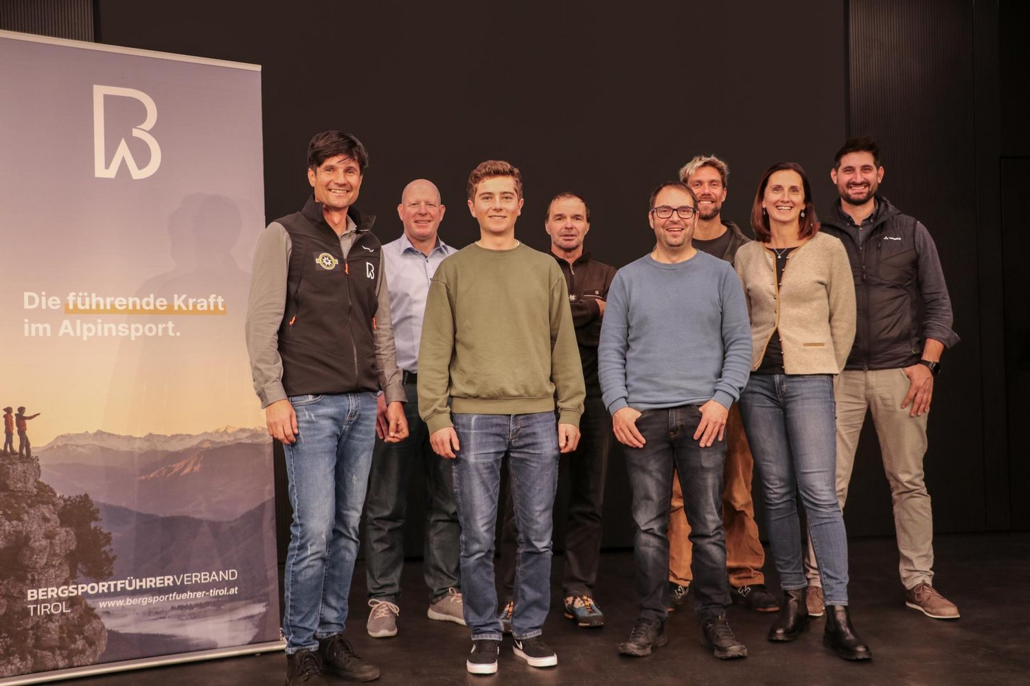 Das neue Präsidium:  Präsident Tom Rabl, Finanzreferent Harald Kinspergher, Vizepräsident Leo Moser, Alex Giacomelli (Berg- und Skiführer:innen), Ausbildungsreferent Mathias Nössig, Fabian Hochheimer (Sportkletterlehrer:innen), Elisabeth Klöbl (Bergwander Das neue Präsidium: Präsident Tom Rabl, Finanzreferent Harald Kinspergher, Vizepräsident Leo Moser, Alex Giacomelli (Berg- und Skiführer:innen), Ausbildungsreferent Mathias Nössig, Fabian Hochheimer (Sportkletterlehrer:innen), Elisabeth Klöbl (Bergwander