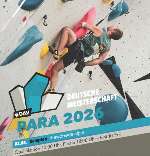 Die Deutsche Meisterschaft im Paraklettern wird 2026 zum zweiten Mal in Deutschland ausgetragen. Eine wichtige und starke Entwicklung für den Sport. Mit der Aufnahme in die Paralympics bekommt der Sport auch hier langsam vermehrte Aufmerksamkeit. Bei der Deutschen Meisterschaft in Kempten dürfen wir uns jedoch im Gegensatz zu den Paralympics auf alle Startklassen freuen!