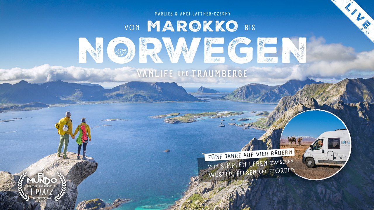Beim El Mundo Abenteuer- und Reisefestival 2024 wurde ihre Live-Reportage mit dem ersten Preis „Bester Vortrag“ ausgezeichnet, dem „Oscar“ der deutschsprachigen Vortragsszene. Good Vibes garantiert, mit Live-Gitarre und Mundharmonika!