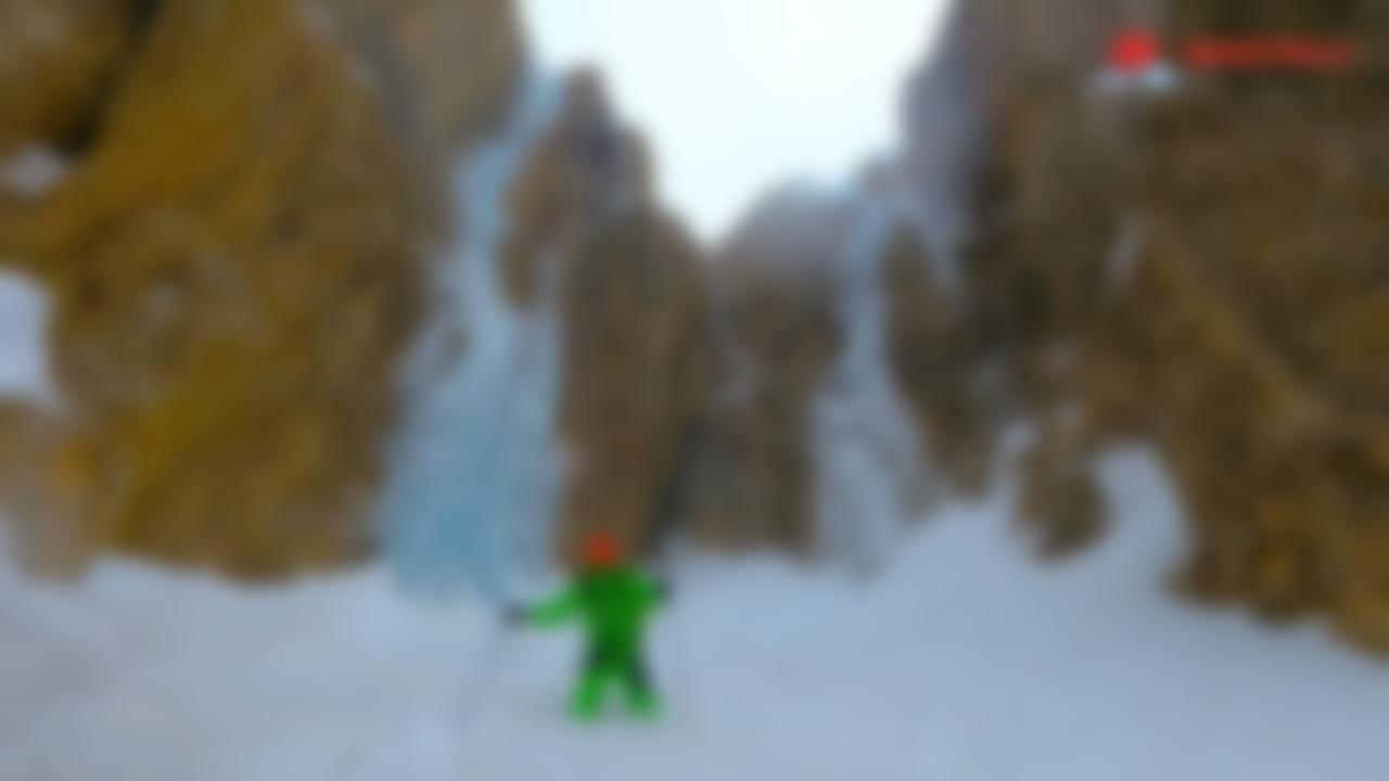 In der linken Linie finden sich am linken Rand zwei bolts im Fels, sowie ein gebohrter Stand am Ende mit zwei bolts. Ansonsten an Abalakovs abseilen. Die rechte Tour hat im unteren Teil oft sehr wenig Eis und ist dann nicht wirklich absicherbar.