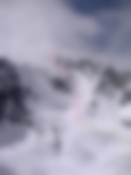 Von der Albignahütte auf dem Sommerweg in Richtung Passo dei Cacciatori bis auf 2670 m. Dort auf den Gletscher (Spaltenzone auf 3000 m) und bis zum Einstieg auf 3080 m.