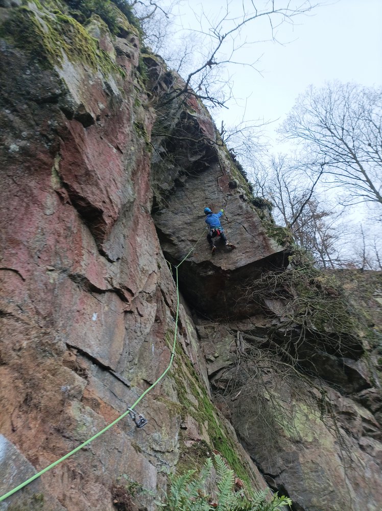 Die logischen Risse sind naturbelassen, schwer auffindbare Hooks wurden markiert. Die Route ist gut eingebohrt, macht viel Spaß und bietet echtes Abenteuer mitten in der Stadt.