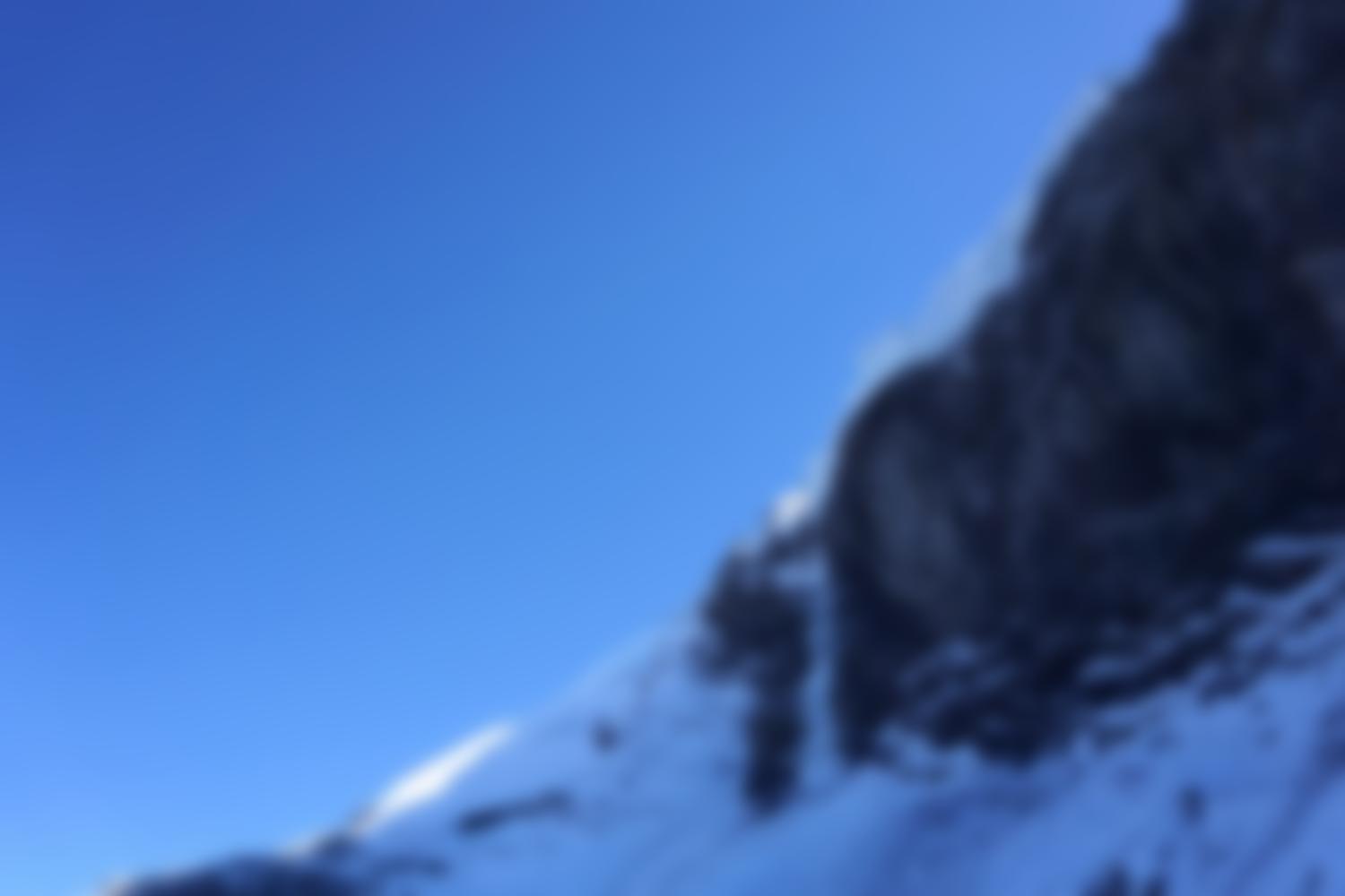 Abseilen an Abalakov-Schlingen über den Eisfall und über den Zustiegsweg zurück. Die Abstiegszeit bemisst sich vom Einstieg, d.h. ohne Abseilen.