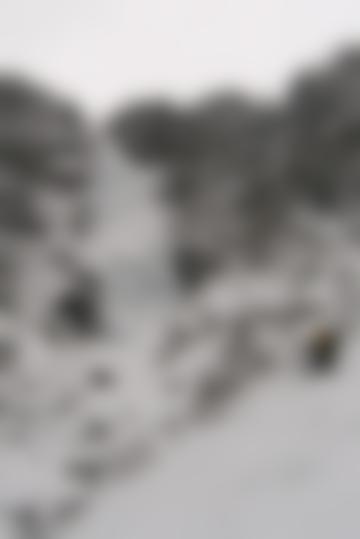 Am Ende der 3ten Seillänge rechts an einem Baum auf eine Kuppe abseilen, dort erneut in einen Graben abseilen und zu Fuß bis zu einer Steilstufe absteigen (man kann je nach Schneeverhältnissen auch gleich von oben in den Graben abseilen - bei wenig Schnee besser noch mal von der Kuppe), hier erneut kurz abseilen.