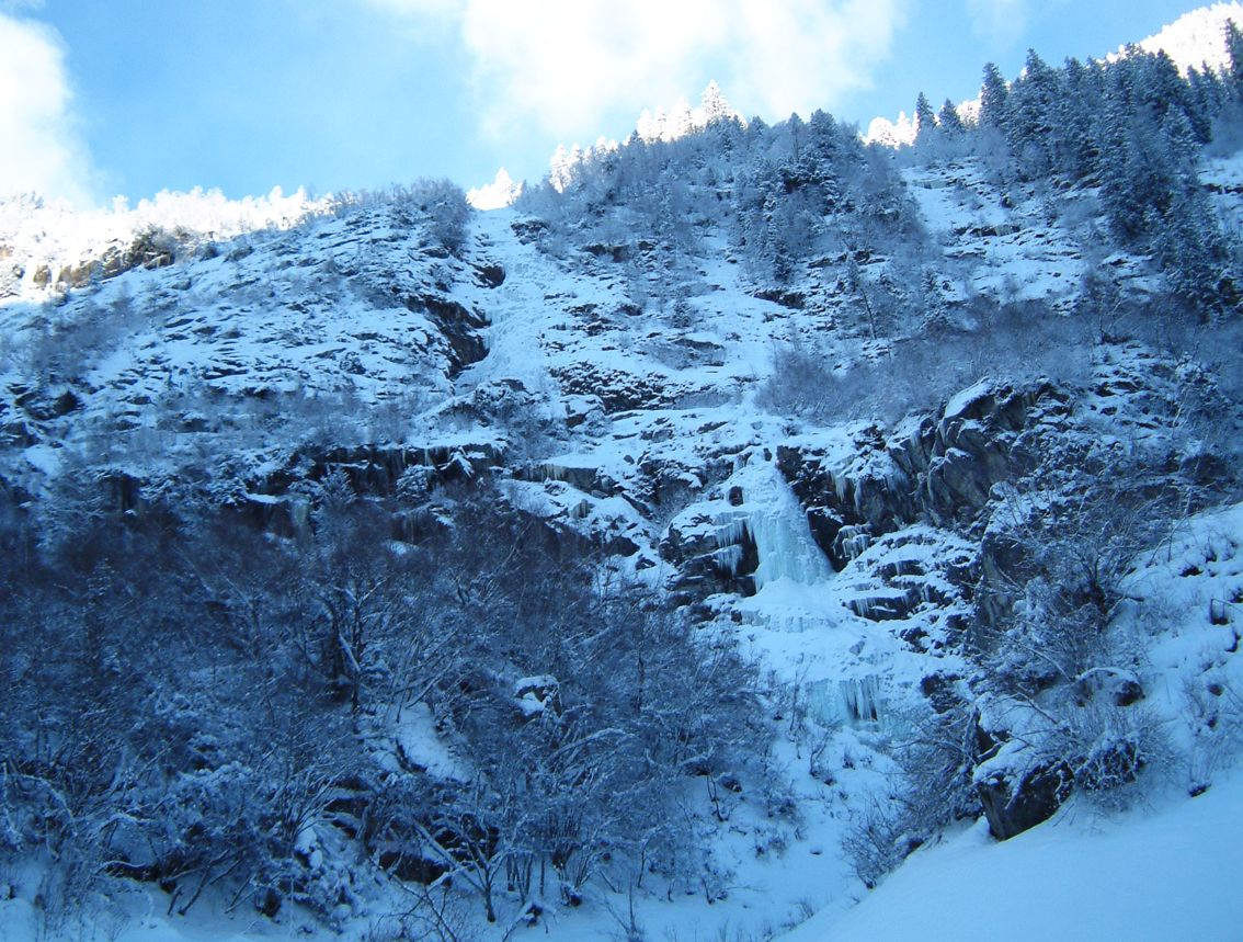Schöner Eisfall mit 2 langen Stufen direkt über dem Gasthaus Rosshag. Die erste Stufe führt in 2 Seillängen auf ein Band mit Gehgelände, die zweite Stufe verlässt man nach der 2. Seillänge rechts in den Wald. Zustieg und Fall sind lawinengefährdet und nur bei sicheren Verhältnissen zu machen.