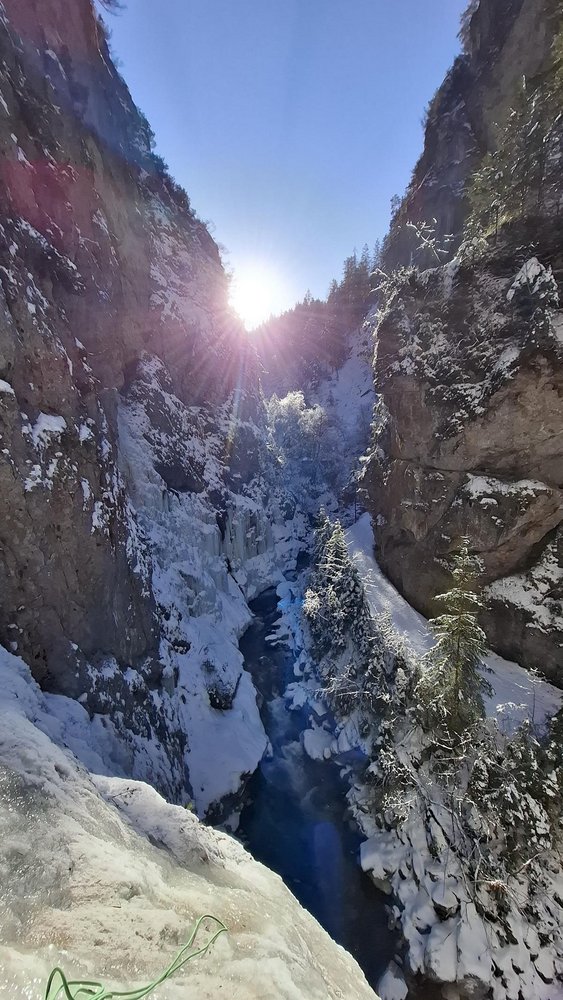 Übungsgelände mit kurzem Zustieg. Die Begehung ist nur nach einer stabilen Kälteperiode möglich, da sich sonst nicht genügend Eis bildet.