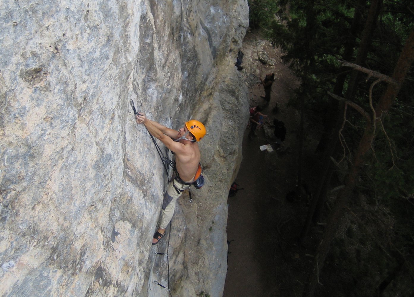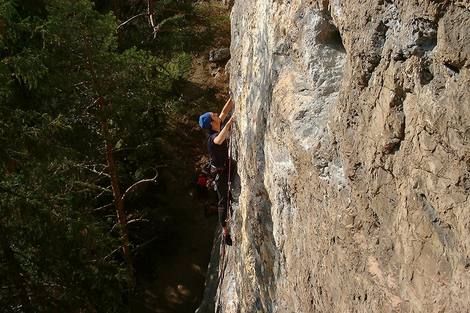Die Adlitzgräben gehören zu den besten Klettergebieten in Österreich. Der Fels ist mit Löchern und Leisten gut strukturiert, haengt ziemlich ueber und ist vom Auto in ca. 1 Minute zu erreichen; also, was will man noch mehr! Der "Soft Mover" ist hier im falschen Klettergebiet, die Touren im 6ten Grad sind relativ selten. Es gibt eine drei Seillängen Routen im 7ten Grad, die man auch bei leichtem Regen klettern kann, wenn man den nötigen Strom im Ärmel hat.
