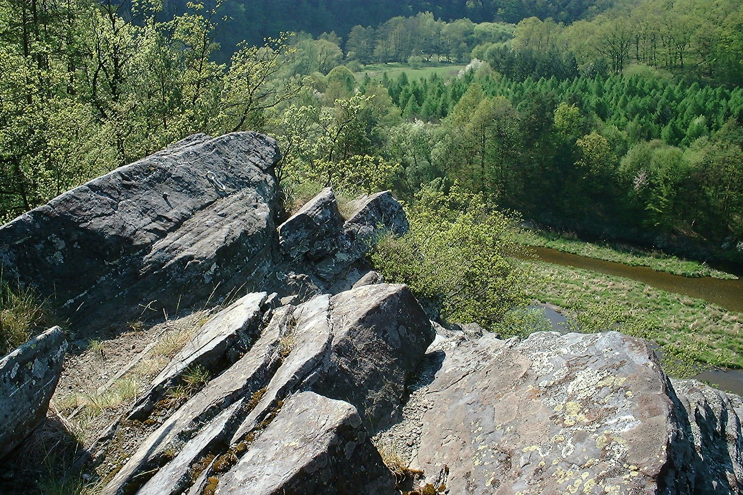 Vom Parkplatz beim Wasserkraftwerk Rosenburg über den Betonsteig den Kamp überqueren und in einen Sattel aufsteigen. Kurz danach zweigt links der beschildertet Wanderweg zum Hängenden Stein ab.