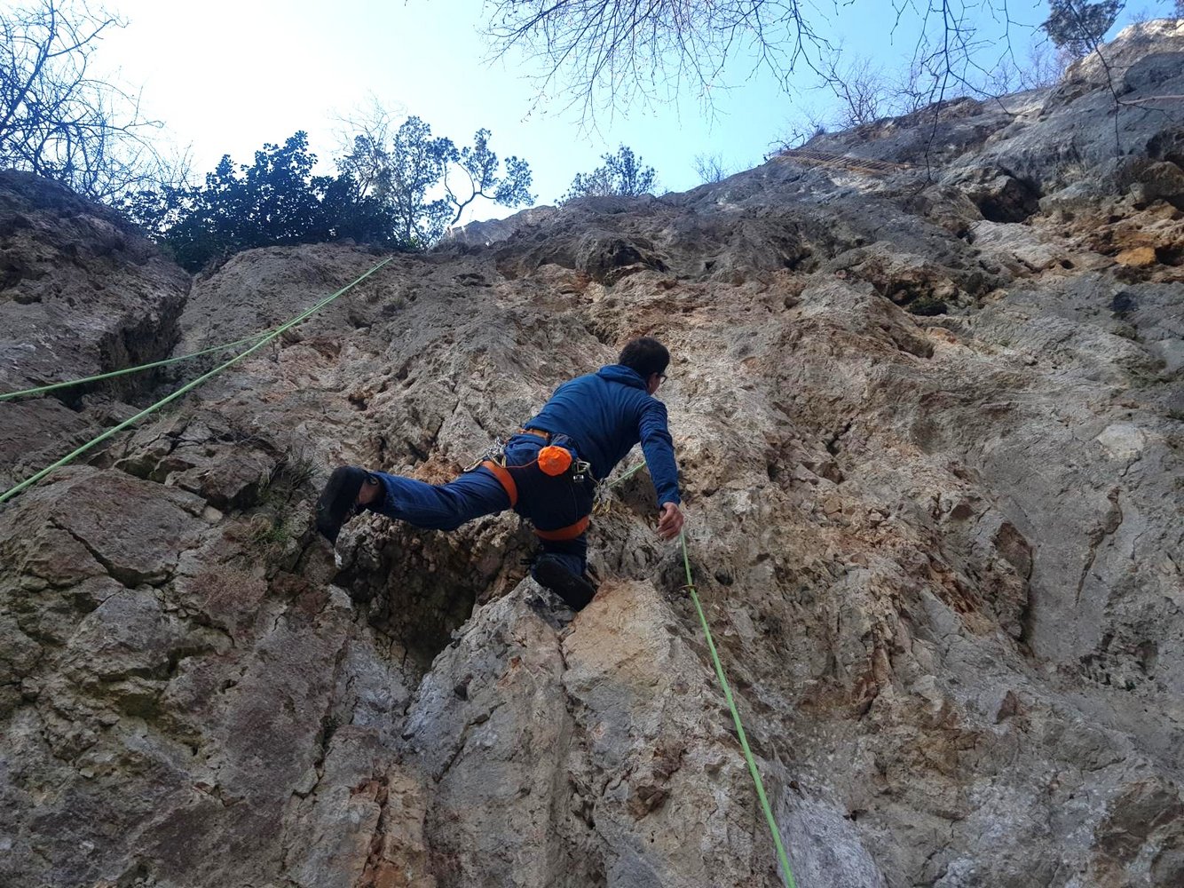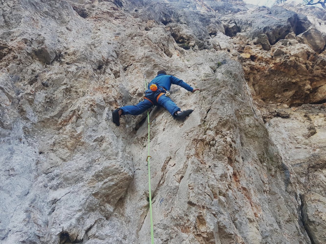 Gut mit Bohrhaken und Umlenkern gesichert.