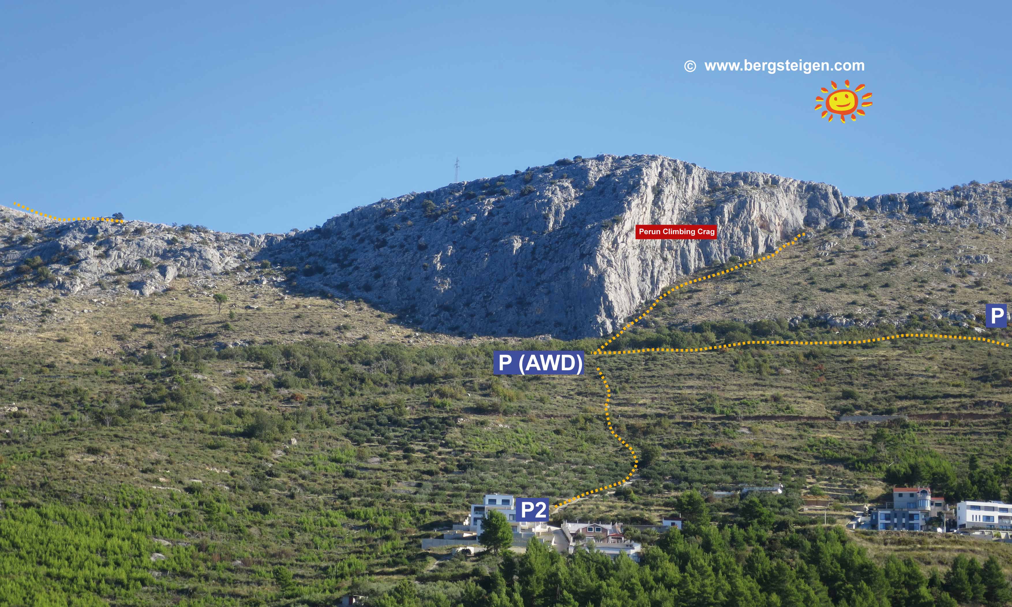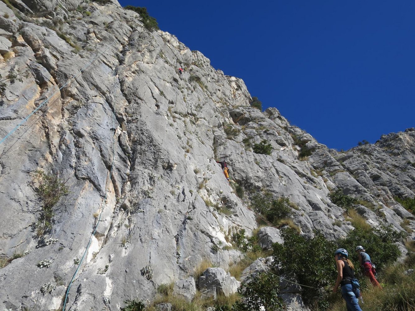 Schöner Klettergarten hoch über Split mit rd. 65 Routen. Der Fels ist perfekt, aber noch so wasserzerfressen wie in Omis oder Brela. Die Routen sind sehr gut abgesichert und teilweise auch mit Namensschildern am Einstieg ausgestattet. Die Kletterei ist primär plattig, aber es gibt auch steilere, sogar versinterte Touren in franz. 7ten Grad. Landschaftlich sehr schön und auch ruhig.