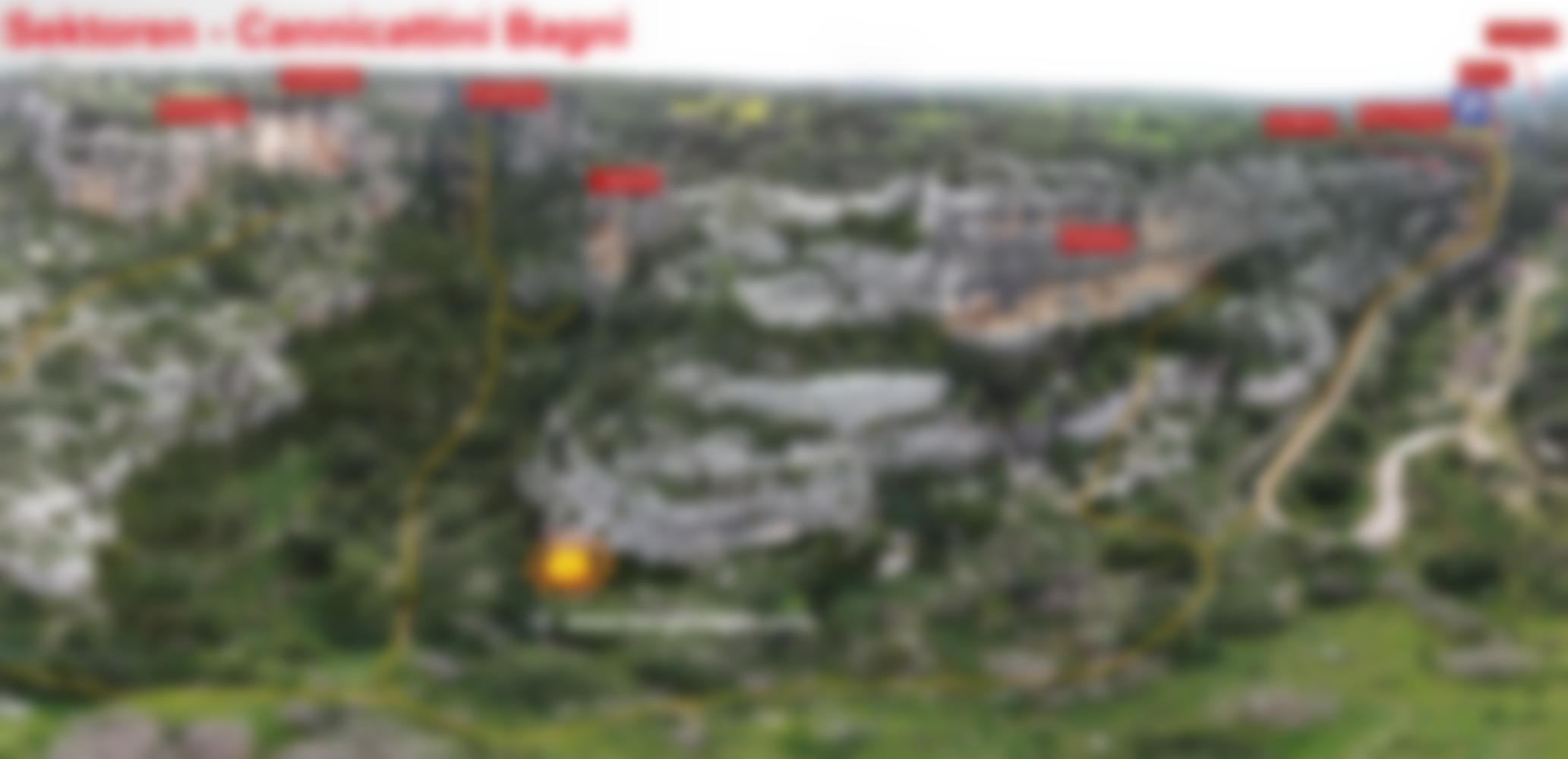 Die meisten Kletterer kennen nur San Vito in Sizilien, der weitläufige Canyon um Canicattini Bagni gehört mitunter zu den besten Spots der Vulkaninsel. Es gibt hier viele Sektoren mit großteils steilen Routen. Der Sektor Powerbank gehört zu den besten. Sehr aktiv beim Erschließen sind hier Stefan Löw und Christoph Stahr.