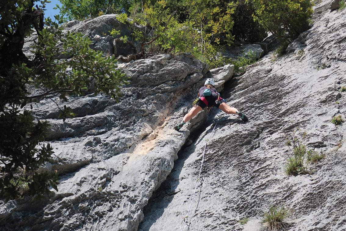 Die Felsen sind nach Süden ausgerichtet, am Wandfuß spenden Büsche angenehmen Schatten. Gut mit den angrenzenden Mehrseillängentouren zu kombinieren.