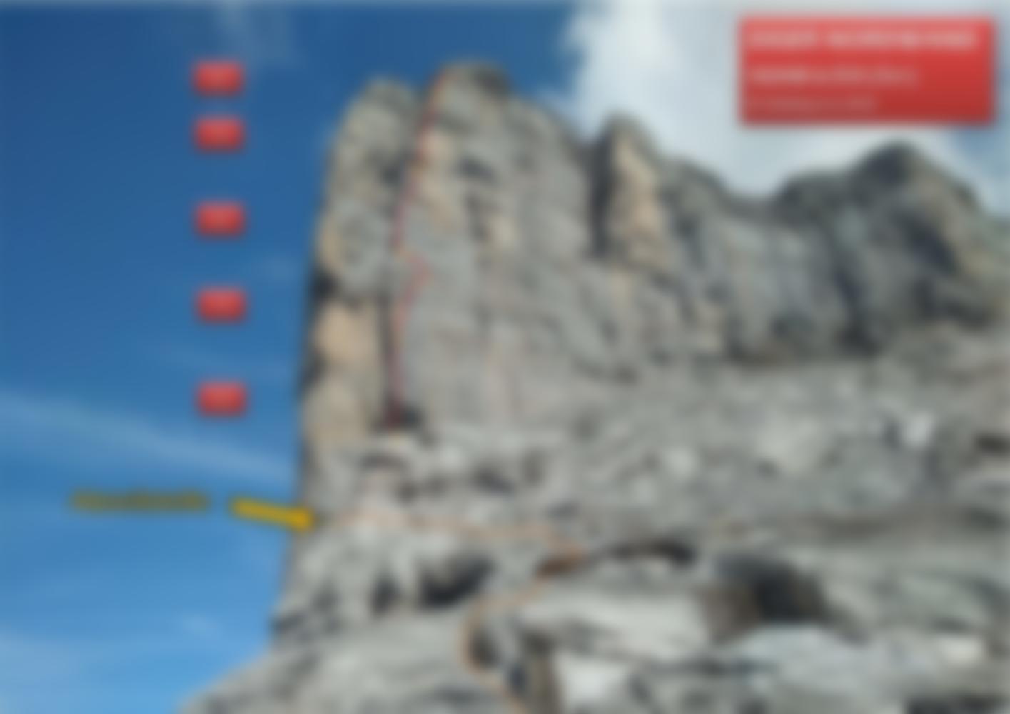 Rückzug: im unteren Teil kann über die Route aufs Einstiegsband abgeseilt werden (derzeit nicht eingerichtet!) und entlang der Fixseilpiste zurück zur Westflanke gestiegen werden (ca. 100m, 3./4. Grad, Standplätze und Fixseile vorhanden). Über den oberen Routenteil kann man zurück zum Depot abseilen (derzeit nicht eingerichtet!).