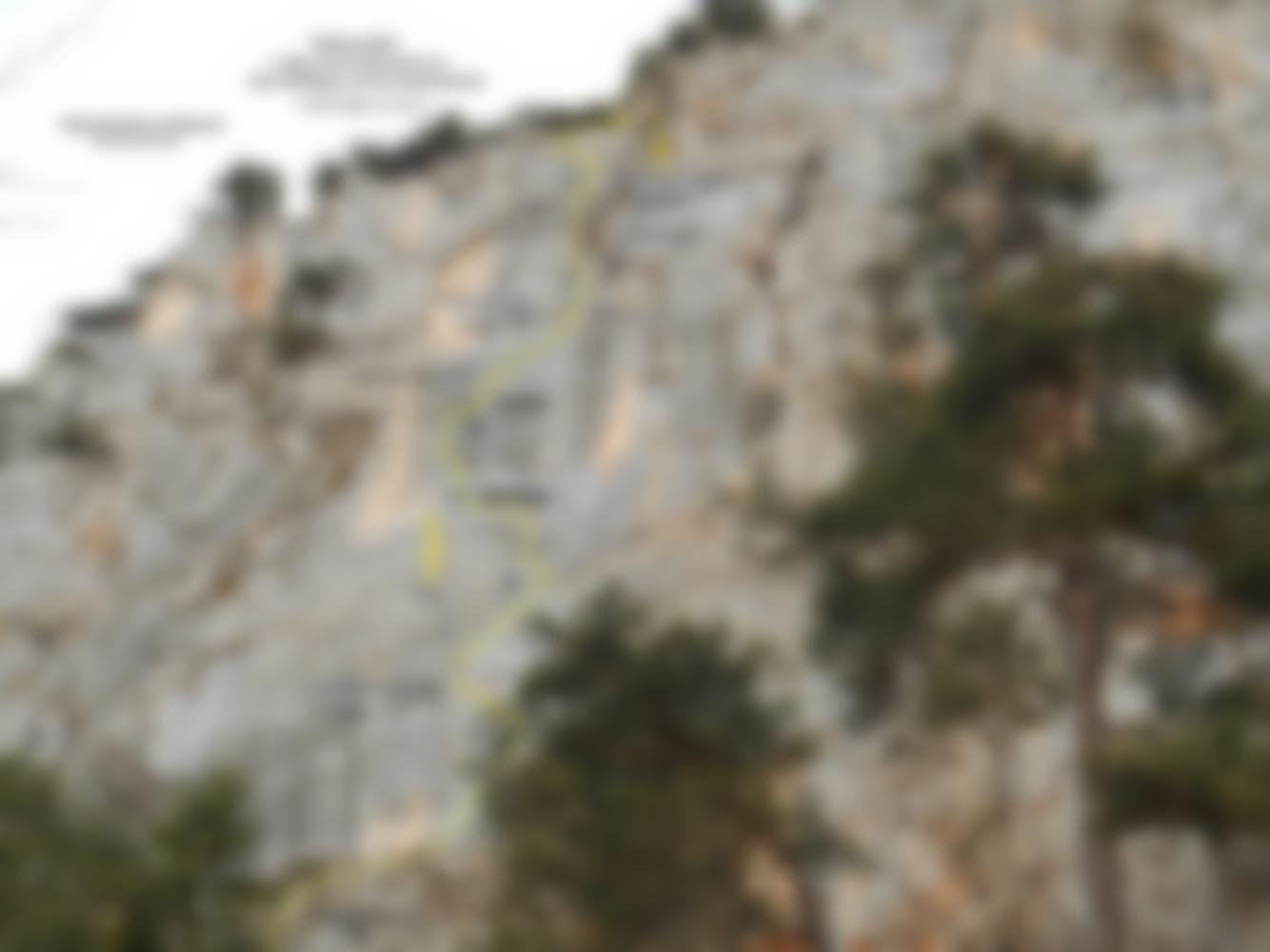 Kurze Sportkletterroute mit teilweise etwas längeren Hakenabständen wie in Klettergärten!