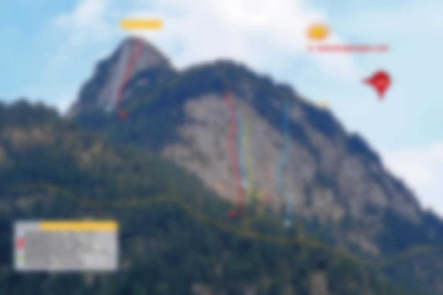 3 SL; Ca, 45 m bis ca. 8 (7a+), auch steile Wandkletterei mit interessantem Dynamo... ca. 7a+