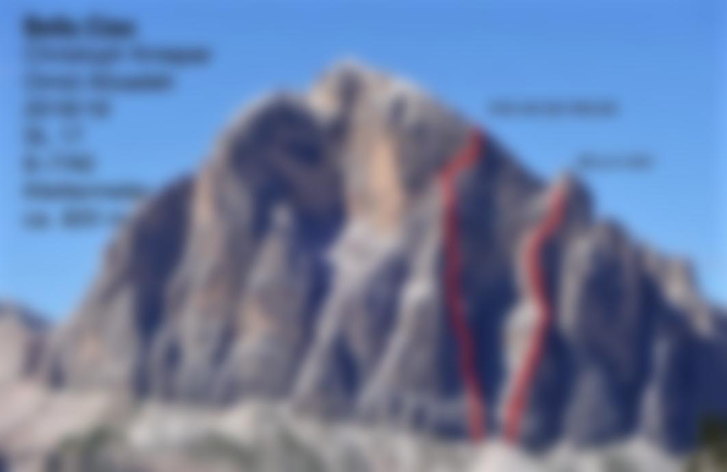 Die Bella Ciao verläuft über den zentralen Teil des 3. Tofanpfeilers immer rechts des "Ultraklassikers" Alvera / Pompanin. Im unteren Drittel dominiert meist kompakte Wandkletterei. Ab der Wandmitte klettert man z.T. direkt über die luftige Kante. Die eigentlich sehr schöne Ausstiegsseillänge ist leider oft naß. Hier schaffen zusätzliche Camelots, welche sich problemlos anbringen lassen, ein sicheres Gefühl.