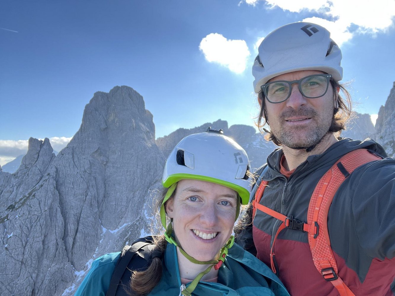 Eine kurze Vorgeschichte: Von den „Alten“ hörte man auf Nachfrage zur Route immer „ja, der Kamin, der ist nicht so einfach…“. Im alten Gebietsführer „Julische Alpen“ von Rother, von vielen auch als „das Märchenbuch“ bezeichnet, ist die Route mit 4+ angegeben. Überwiegend jedoch mit 3+. Im aktuellen italienischen Führer ist der Kamin mit 5 angegeben, die Seillänge danach ebenfalls mit 5. Und wenn man die 5er Länge nach dem Kamin nun klettert, und das auch ohne Haken als technisches Hilfsmittel, dann wird aus dem Fünfer meiner Meinung nach mindestens ein Sechser. Aber vielleicht liegt es auch an den herbstlichen Temperaturen oder der aktuell schlechten körperlichen Verfassung? Wer weiß, selbst herausfinden…