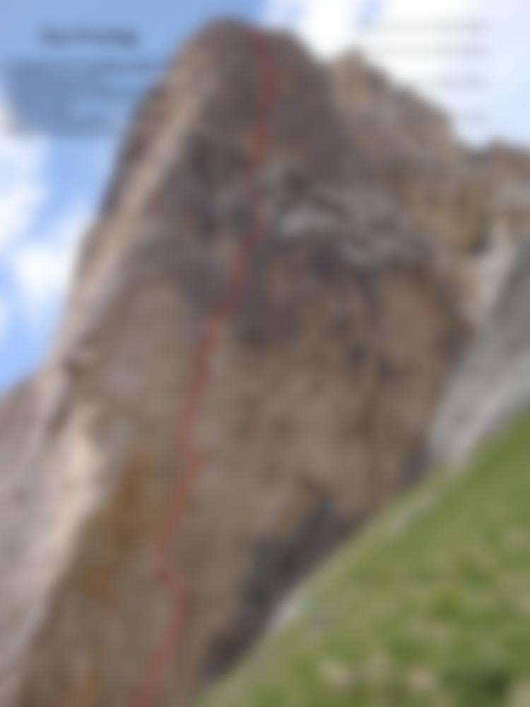 Gemische Wand-, Riss- und Verschneidungskletterei im splittirgen Fels, anstrengend. Die Geschichte der Erstbegehung findet ihr hier