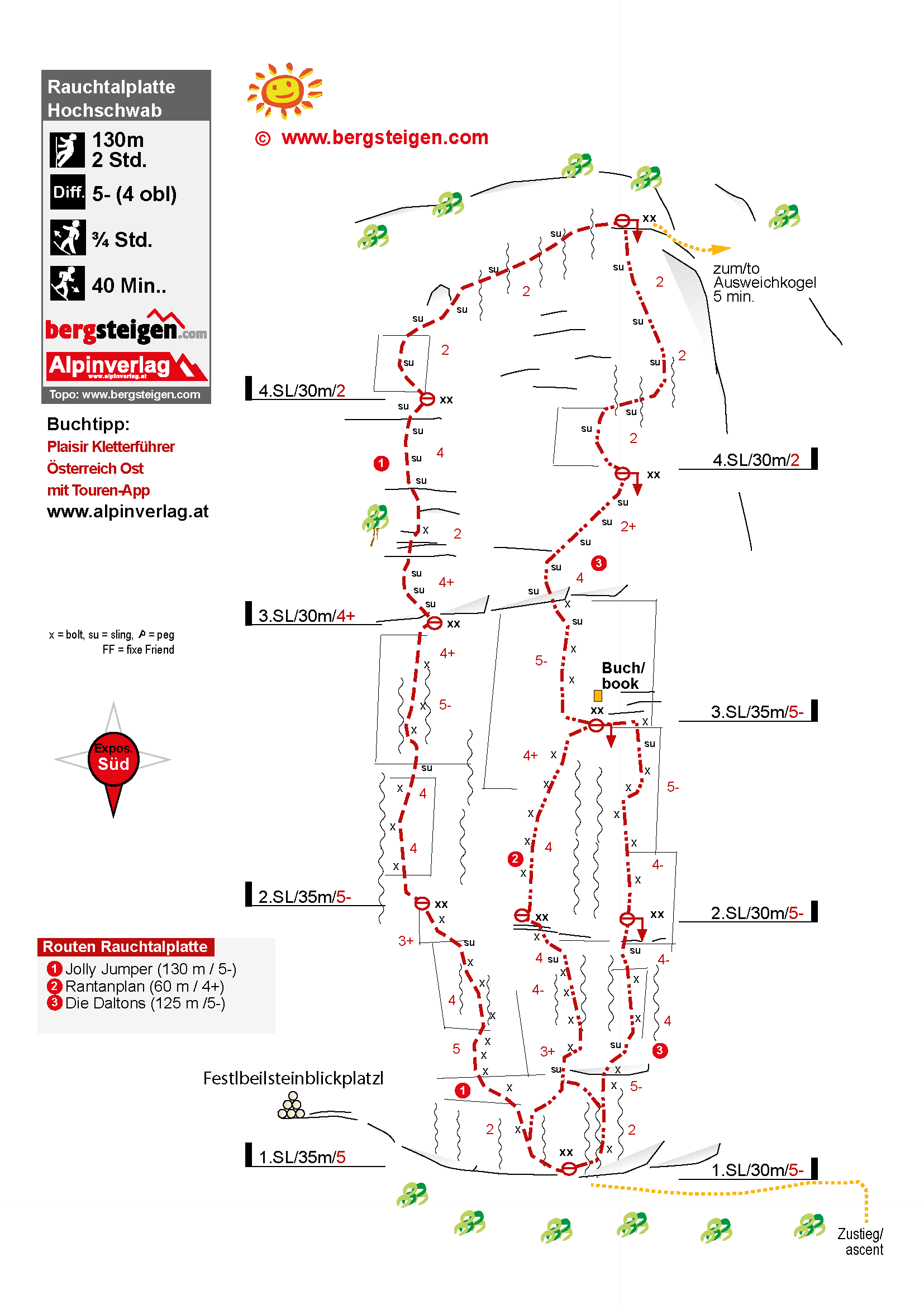 Im Jahr 2002 eröffnete Peter Pesendorfer mit seinen damals 5 und 7 Jahre alten Buben drei Routen an der Rauchtalplatte.