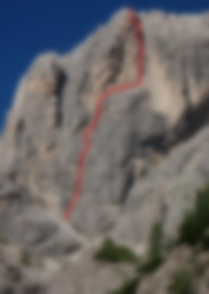 die Schlüsselstelle in der siebten Seillänge kann auch über eine kleine Rampe (1BH) umgangen werden. In der 6. Seillänge Zwischenstand möglich.