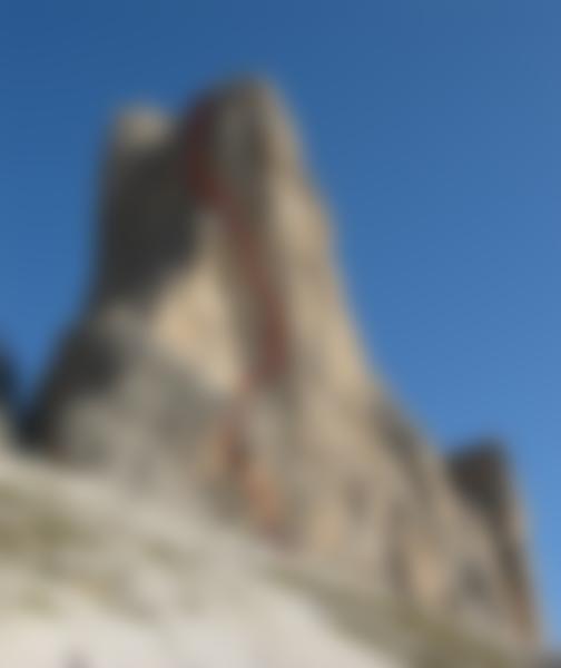 Eindrucksvolle Routenführung an gelbem, teils sehr brüchigen Fels. Es ist eine sehr anspruchsvolle und steile Tour, die selbst abgesichert werden muss.