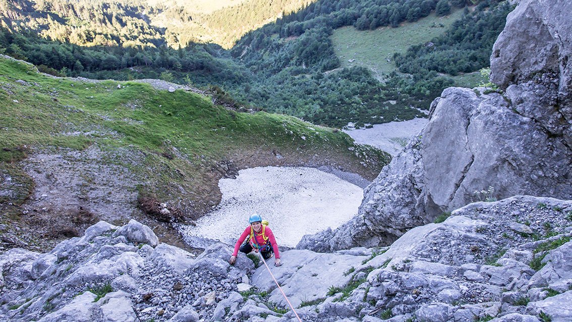 Die Erstbegeher begaben sich offensichtlich auf Entdeckungsreise, waren erfolgreich und schufen eine gut abgesicherte Tour durch ein Rinnen- und Kaminsystem. Der Anstieg ist zwar etwas inhomogen, die schwere Stelle kann man aber gut technisch klettern. Man bewegt sich also primär im 4ten und 5ten Schwierigkeitsgrad - deshalb ist diese Route auch so beliebt.