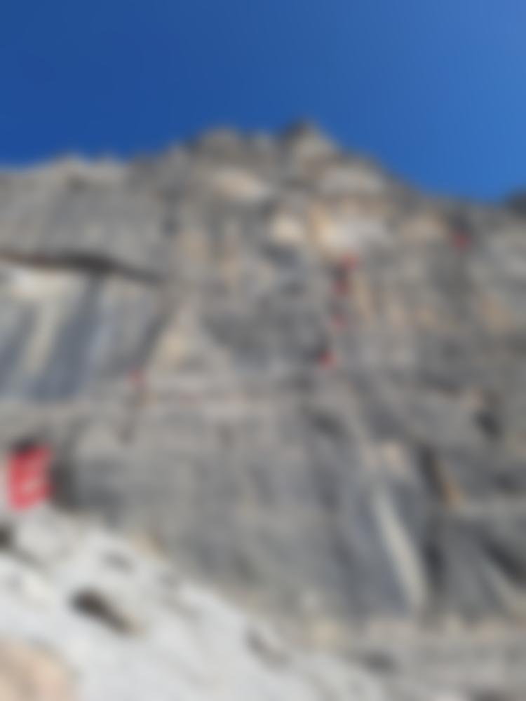Über eine Rampe Seilfrei zu Stand (sichtbar von unten) auf einem Band. Dieses nachts rechts ca 15 Meter folgen zum eigentlichen Start der Tour (Stand aufbesserbar mit 4er Cam). Erste Seillänge folgen bis auf ein Podest mit 2 Normalhaken. Dann folgt die Schlüssellänge mit mehreren Haken. Nach der Schlüssellänge unschwierig auf ein Band. Hier entweder rechts (2 Haken) oder links (ohne Sicherungsmöglichkeit dafür etwas leichter) auf das Fliegerbandl. Dort angekommen ein Haken (protect your follower), bevor rechts nach 10 Meter der Stand vor dem schönen Hangelquergang kommt. Auf gleicher Höhe bleibend (ein erster Haken steckt auf Fußhöhe) entlang bis ein Stand (3 Haken) kommt, welcher für Fotos gut geeignet ist. Sonst unschwierig weiter bis Stand vor der Ausstiegsrinne.