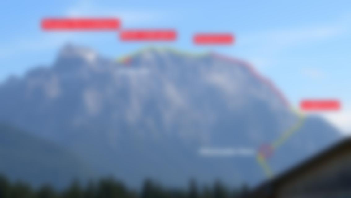 Achtung: Bei Nässe oder Schneelage ist das Schrofen-/Grasgelände (Vorgifpel zum Hauptgipfel bzw. Weiterweg zum Mittenwalder Höhenweg) gefährlich bzw. bei eingeschränkter Sicht ist die Wegfindung dort nicht ganz einfach!