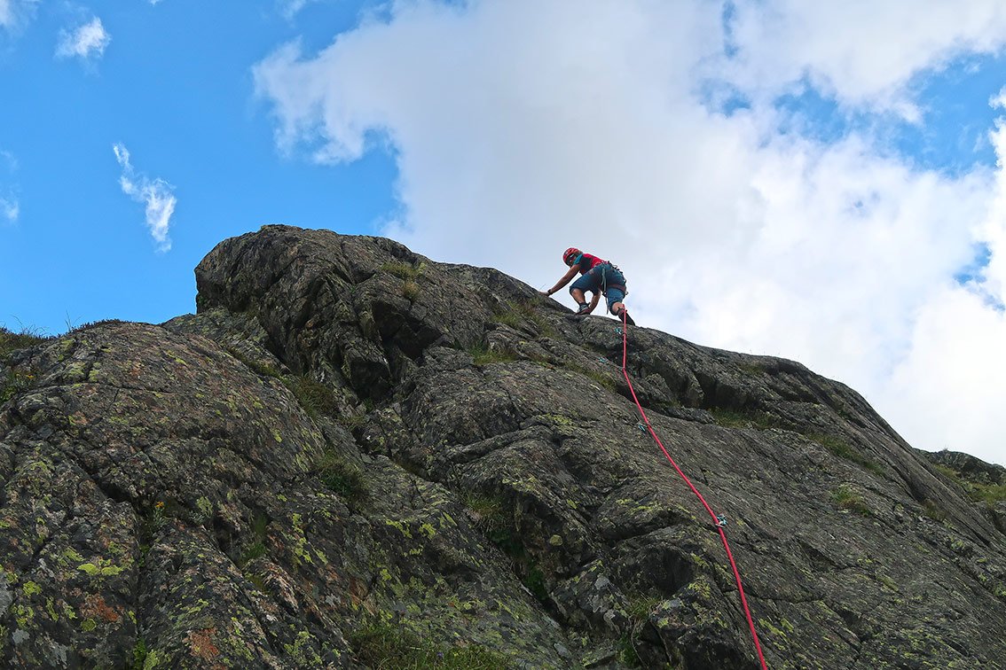 Bei Nässe (der Fels ist tlw. mit Flechten überzogen) und Schneelage ist die Tour und der steile Graszustieg heikel.