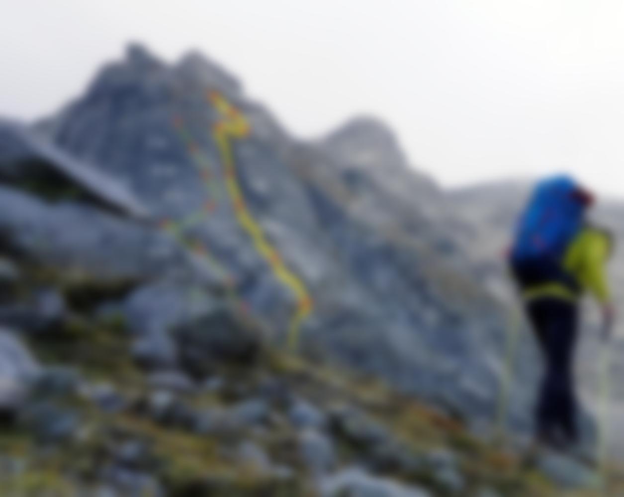 Siehe Topo! Die gelbe, rechte Tour!