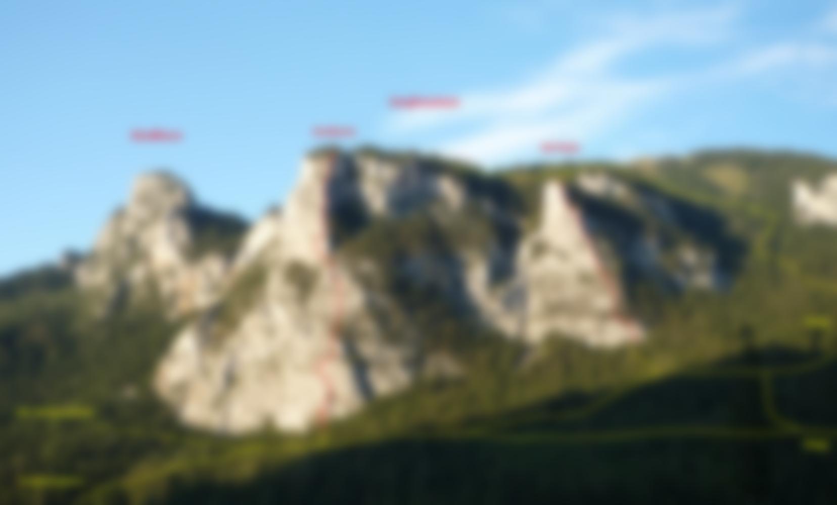 Sehr schöne Pfeilerroute mit südwestlicher Ausrichtung, relativ gut mit BH abgesichert. Die Route ist zwar etwas inhomogen, jedoch entschädigt dafür die 6. Seillänge - ein Muss !! Das Gebiet liegt in einer "Jägerproblematischen-Zone", also bitte ruhig verhalten und wenn möglich bei Einbruch der Dämmerung wieder beim PKW sein.