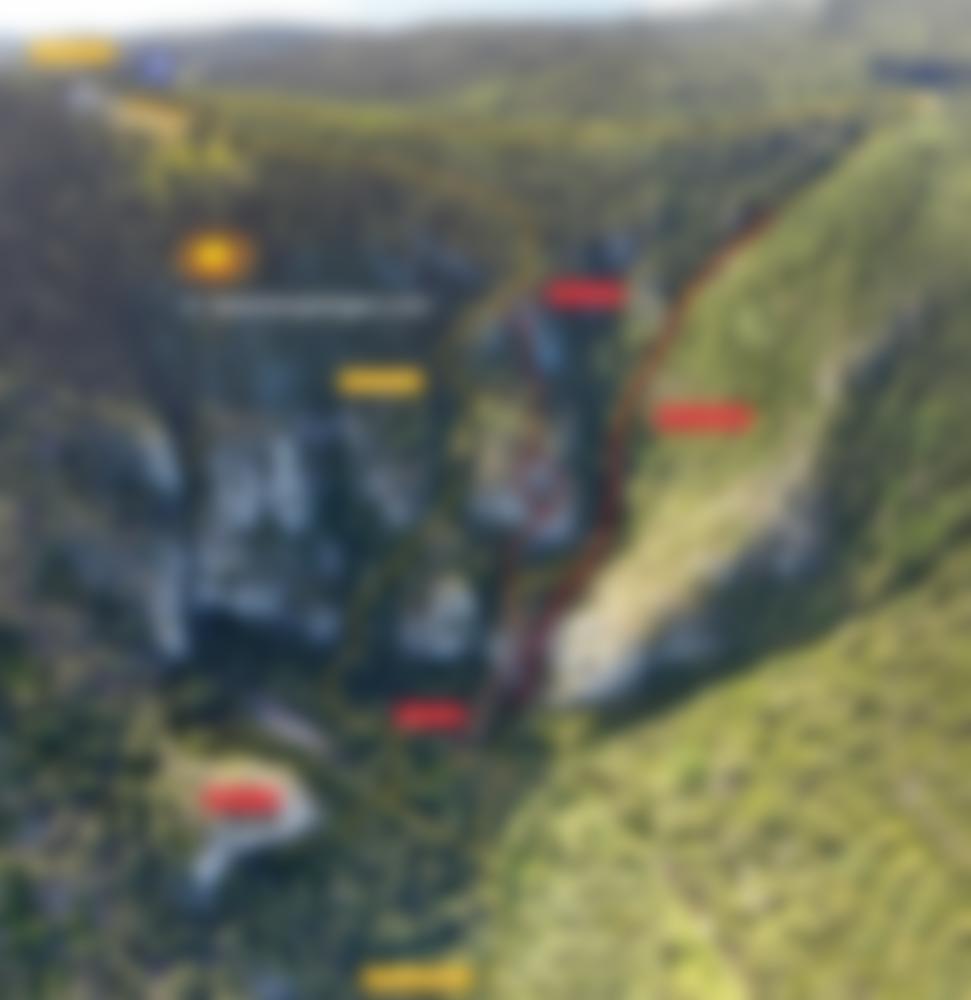 Die Route ist mit schwachen roten Strichen markiert, die aber nicht leicht zu erkennen sind.