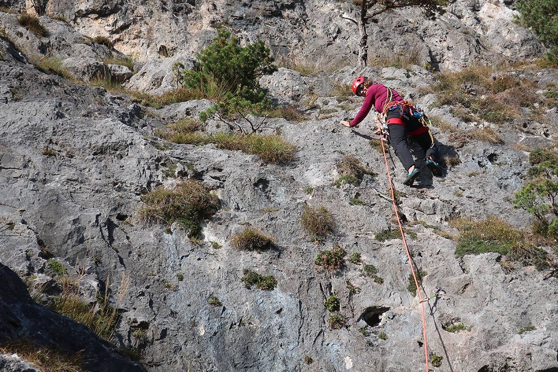 Die Route Lisa ist eine bis auf wenige Meter wirklich gute und eher einfachere Mehrseillängenroute im unteren Stock der Geierwand. Die erste Seillänge ist gleich der Schlüssel zum Erfolg, da muss man recht kräftig zu langen. Der Fels ist auf weite Strecken sehr gut, nur im Mittelteil und am Ausstieg gibt es Schrofen. Die erste Seillänge wird auch gerne als Klettergartentour gemacht, ein Highlight ist aber auch die vorletzte Seillänge - steil aber sehr griffig an allerbestem Fels.