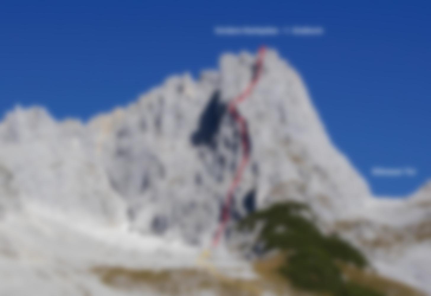 Die Route verläuft zunächst rechts der Wirtskante, bevor sie diese nach der 6. Seillänge kreuzt. Die 9. Seillänge verläuft gemeinsam mit dem SO-Grat. In der letzten Seillänge ist der direkte Ausstieg zum Gipfel brüchig und daher der Ausstieg über die SO-Wand vorzuziehen. Dazu vom letzten gebohrten Zwischenhaken nach links bis in eine senkrechte Verschneidung queren. Durch diese auf den Gipfel und wieder nach rechts zum Stand queren. Genaue Beschreibung siehe Topo.